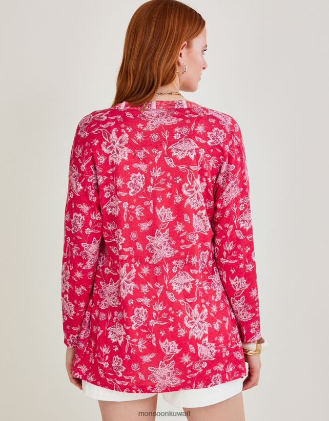 غطاء مطبوع بمقياس زهور الكتان ملابس البرتقالي Monsoon نحيف N4BV8X1109 - Monsoon children