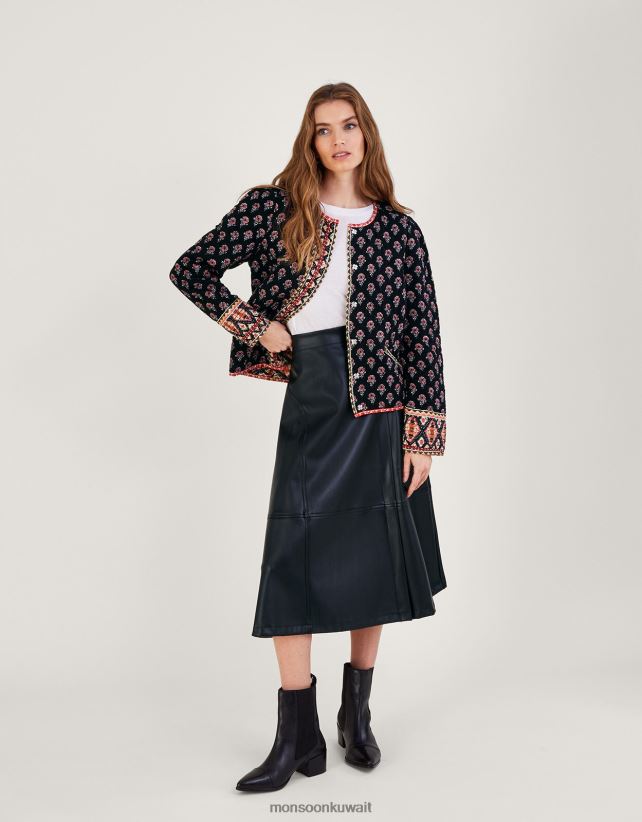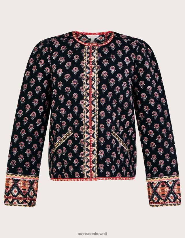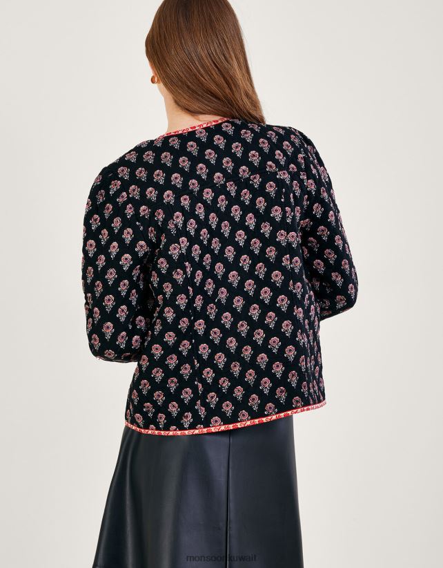 Monsoon محل - سترة مبطنة بطبعة وردة من لينزينج إيكوفيرو ملابس أسود Monsoon نحيف N4BV8X1049