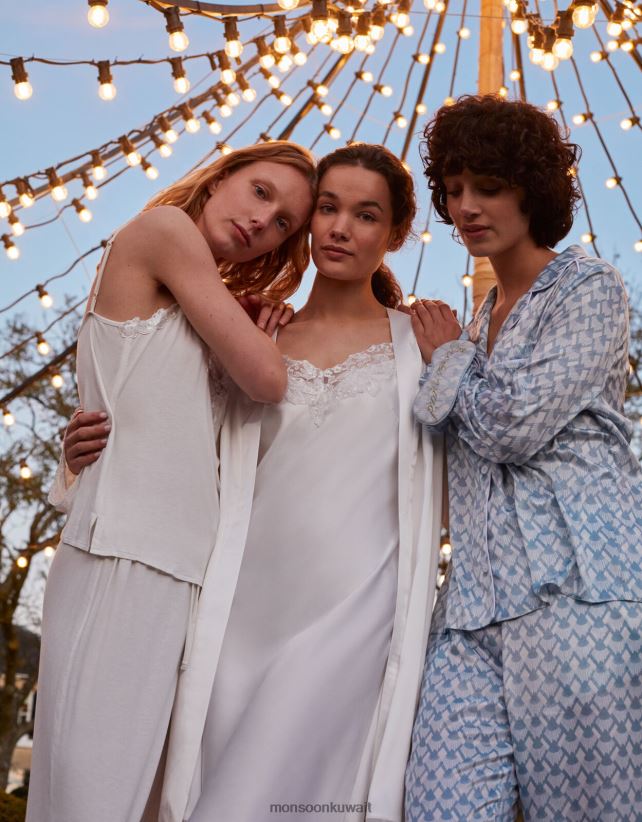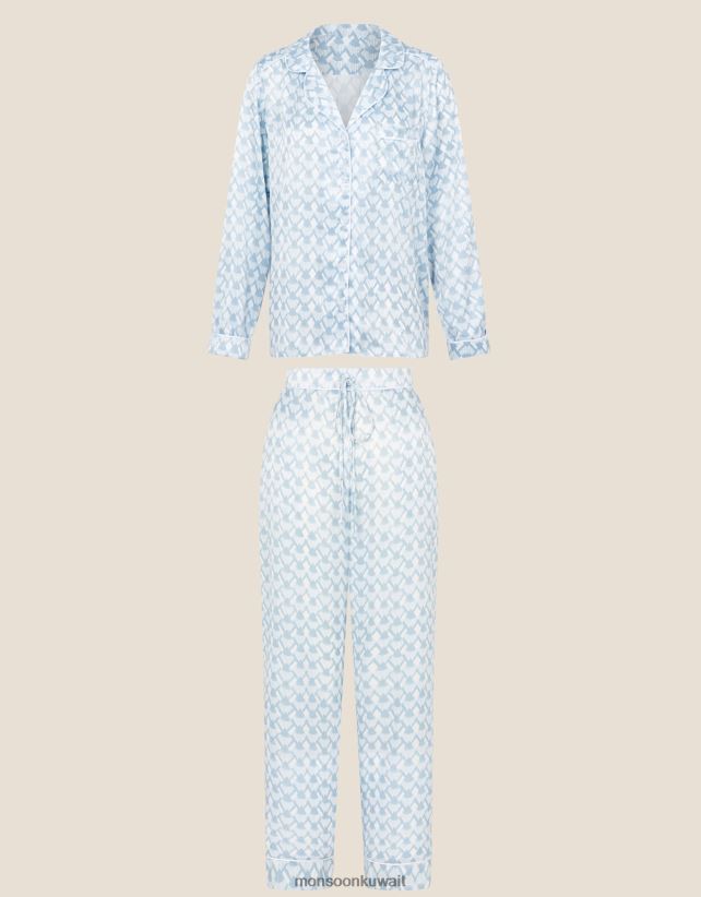 طقم بيجامة زفاف من الساتان بطباعة هندسية ملابس أزرق Monsoon نحيف N4BV8X682 - Monsoon online customer service