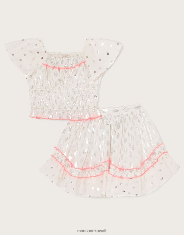 طقم تنورة وتنورة من رقائق البيزلي ملابس أبيض Monsoon بنت N4BV8X1978 - Monsoon online customer service