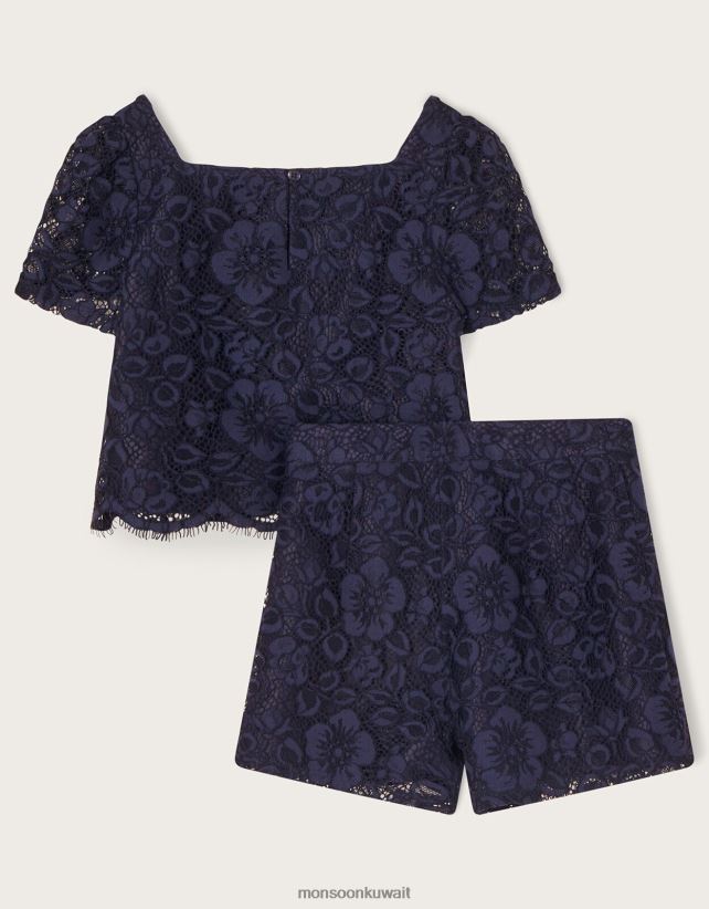 طقم شورت وجزء علوي من الدانتيل ملابس الأزرق الداكن) Monsoon بنت N4BV8X1812 - Monsoon children