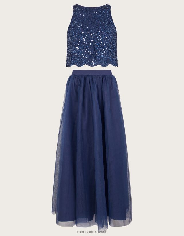 مجموعة من الترتر العلوي وتنورة ماكسي من التول للحفلات الراقصة ملابس الأزرق الداكن) Monsoon بنت N4BV8X2813 - Monsoon kuwait online shopping