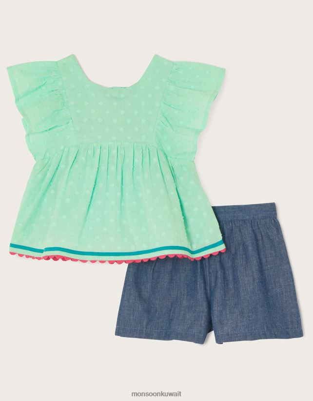 Monsoon محل - طقم قميص وسروال قصير على شكل حيوانات الغابة من بيبي دوبي ملابس الأخضر (النعناع) Monsoon بنت N4BV8X2164