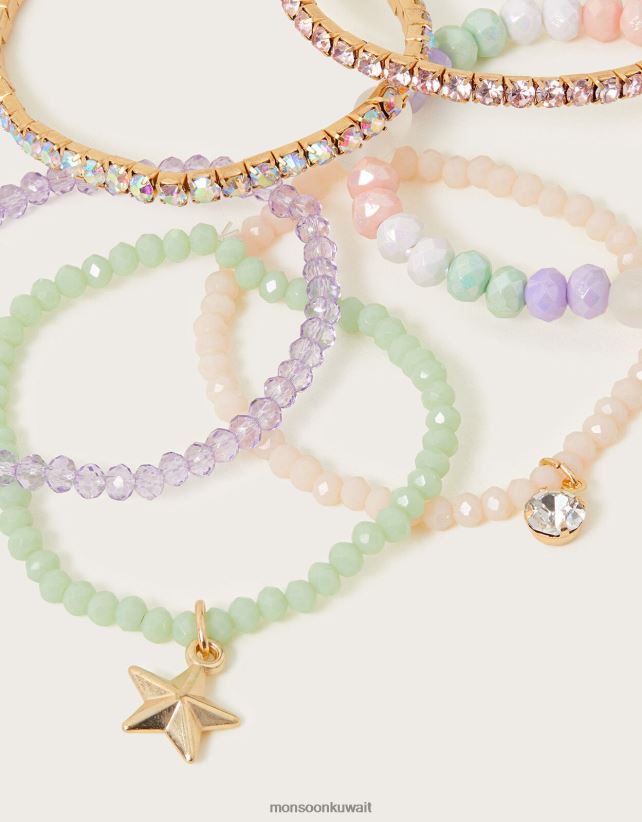 Monsoon محل - أساور مطرزة بوهيمية، 6 قطع ملحق موضة Monsoon بنت N4BV8X2585