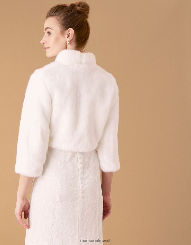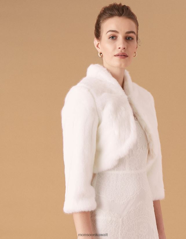 سترة زفاف من الفرو الصناعي من ماريا ملابس عاج Monsoon نحيف N4BV8X1173 - Monsoon kuwait avenues