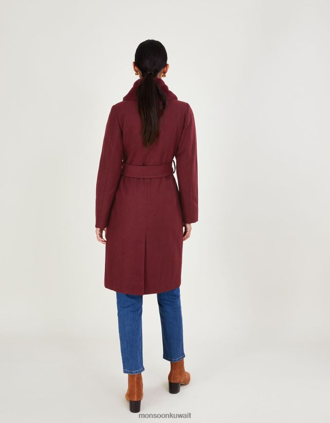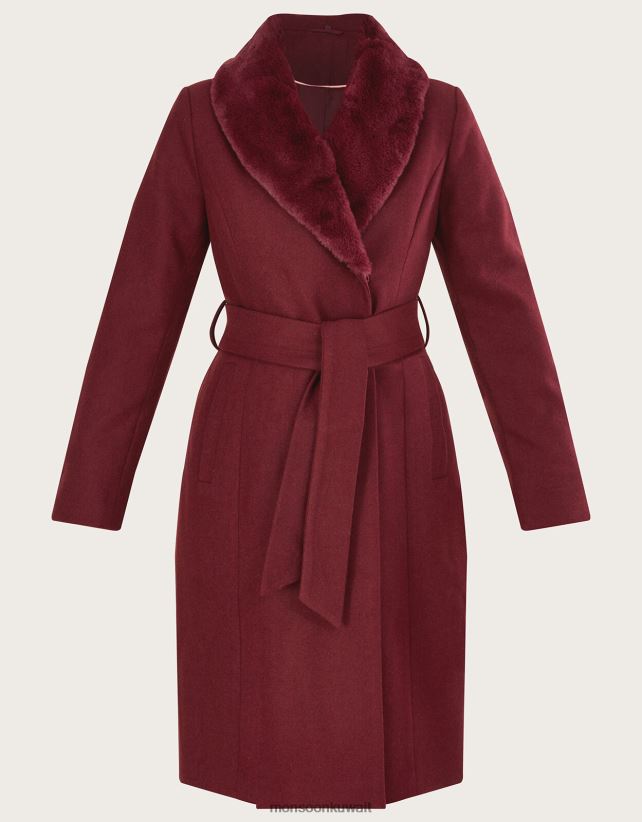 معطف بياقة فرو روفوس وحزام من البوليستر المعاد تدويره ملابس خمر أحمر) Monsoon نحيف N4BV8X852 - Monsoon kuwait avenues