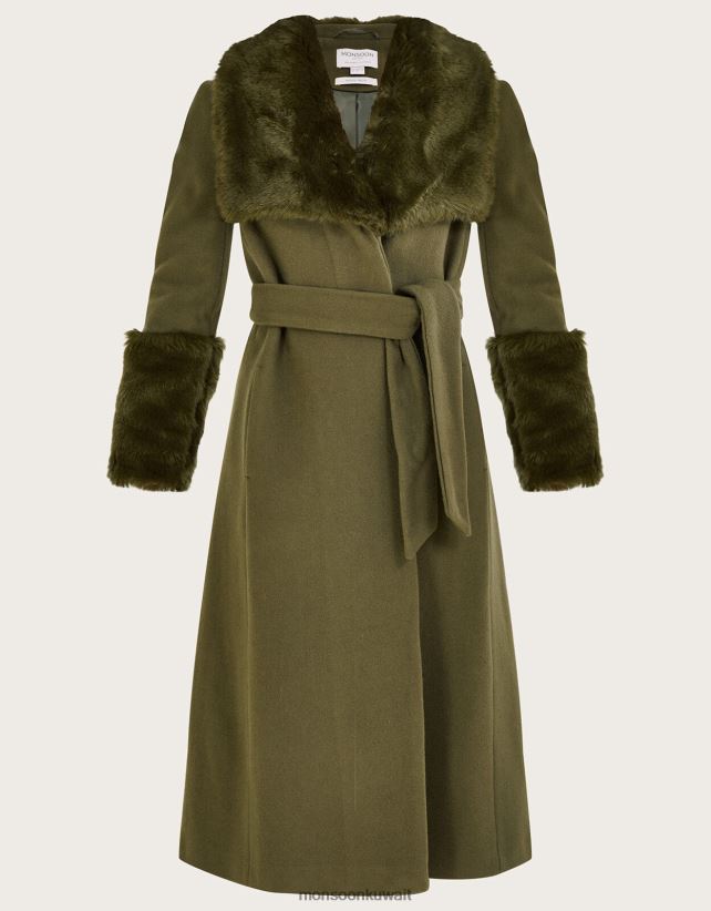 معطف سادي مزخرف بالفرو الصناعي ملابس أخضر Monsoon نحيف N4BV8X406 - Monsoon kuwait online shopping