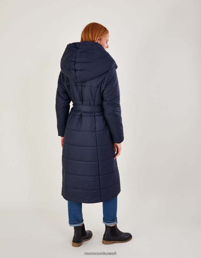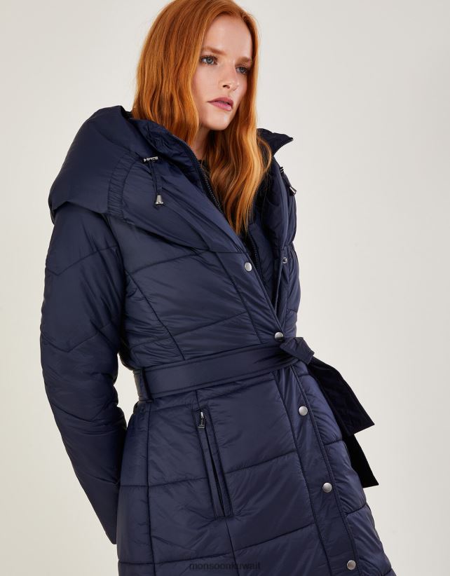 Monsoon accessorize - معطف سورينا متوسط الطول مبطن بحزام من البوليستر المعاد تدويره ملابس الأزرق الداكن) Monsoon نحيف N4BV8X628