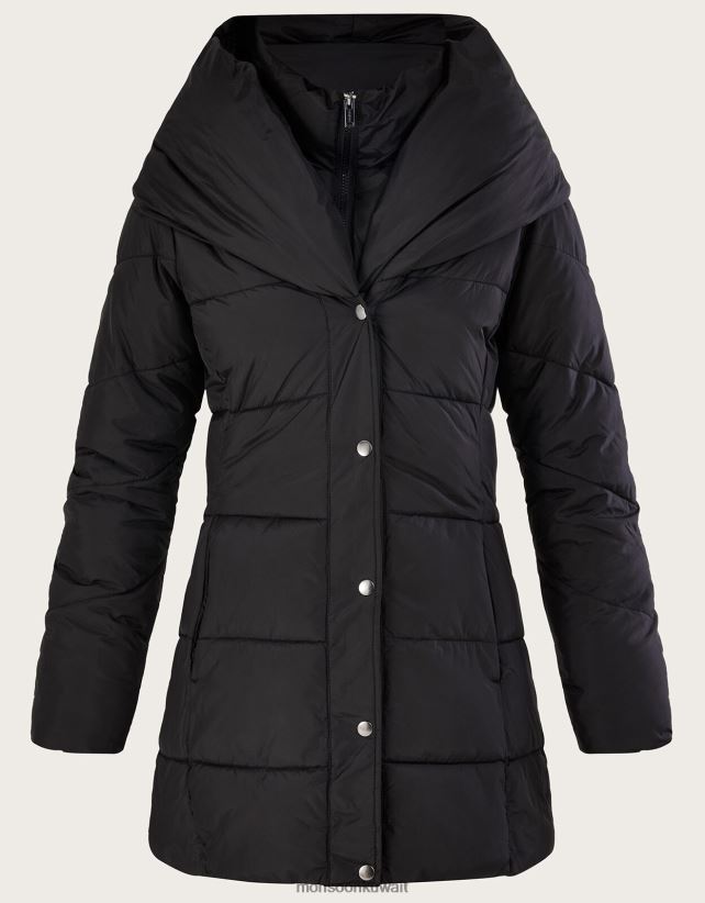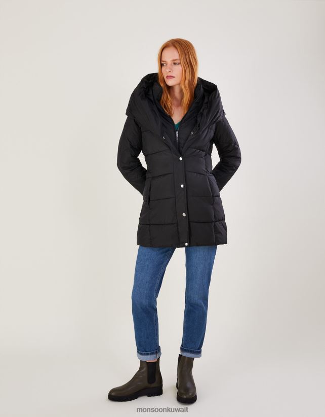 Monsoon Kuwait - معطف قصير مبطن من لورا مصنوع من البوليستر المعاد تدويره ملابس أسود Monsoon نحيف N4BV8X601