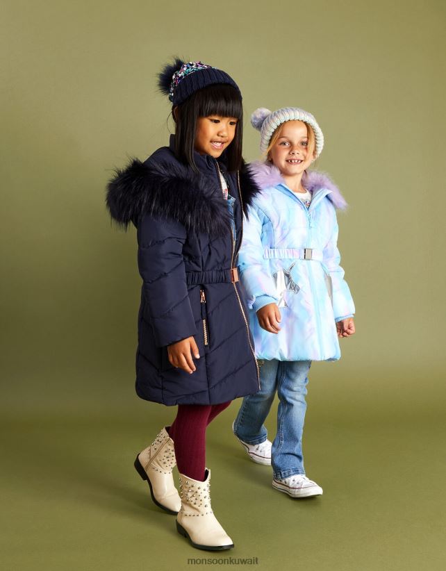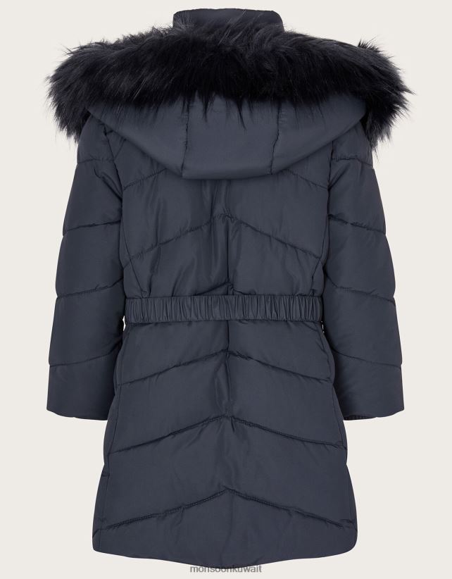 معطف بغطاء رأس من الفرو الصناعي بحزام ملابس الأزرق الداكن) Monsoon بنت N4BV8X1698 - Monsoon children