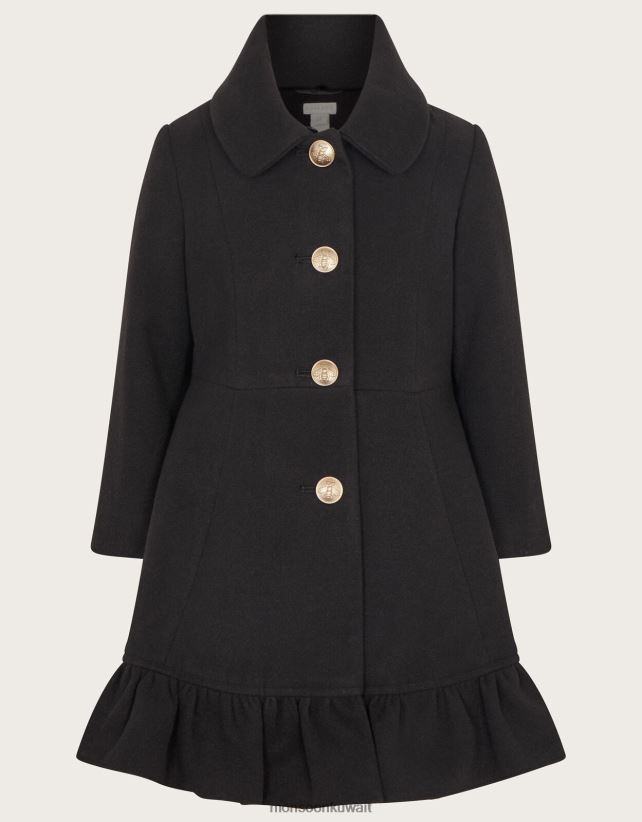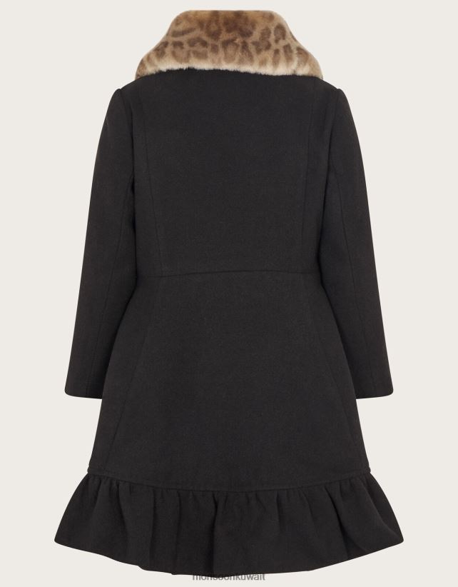 معطف بياقة من الفرو الصناعي وحاشية مكشكشة ملابس أسود Monsoon بنت N4BV8X1709 - Monsoon kuwait avenues