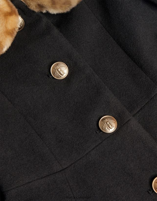 طبقة أنيقة ستبقيهم دافئين في المناسبات الشتوية، ويتميز هذا المعطف بياقة فاخرة من الفرو الصناعي قابلة للفصل. يتم تثبيته بزر من خلال التثبيت، إذا نظرت عن كثب فسترى تصميم نحلة جميل لكل زر. تم تشطيبه بحاشية مكشكشة وجيوب للحفاظ على دفء الأيدي الباردة. أسود
