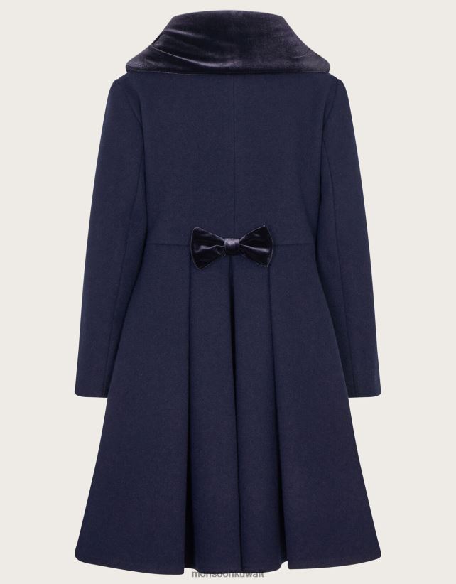 معطف ذو ياقة مخملية عالية ومنخفضة من مزيج الصوف ملابس الأزرق الداكن) Monsoon بنت N4BV8X1731 - Monsoon kuwait online shopping
