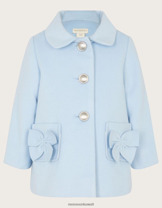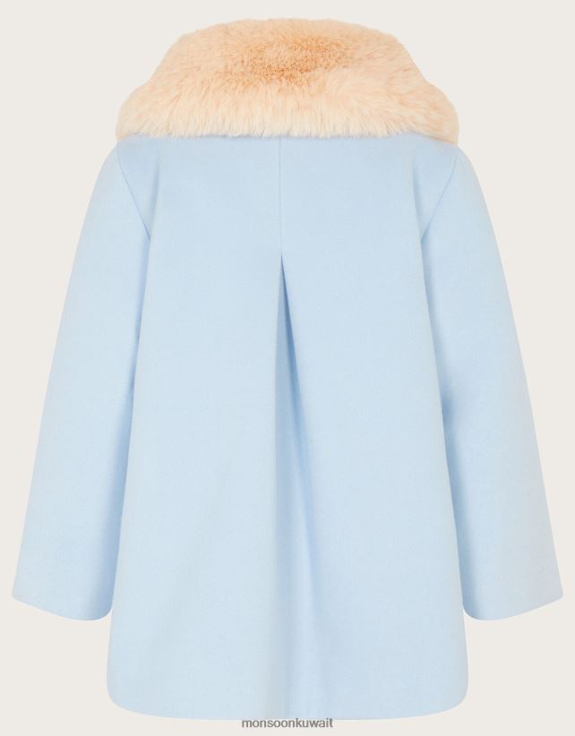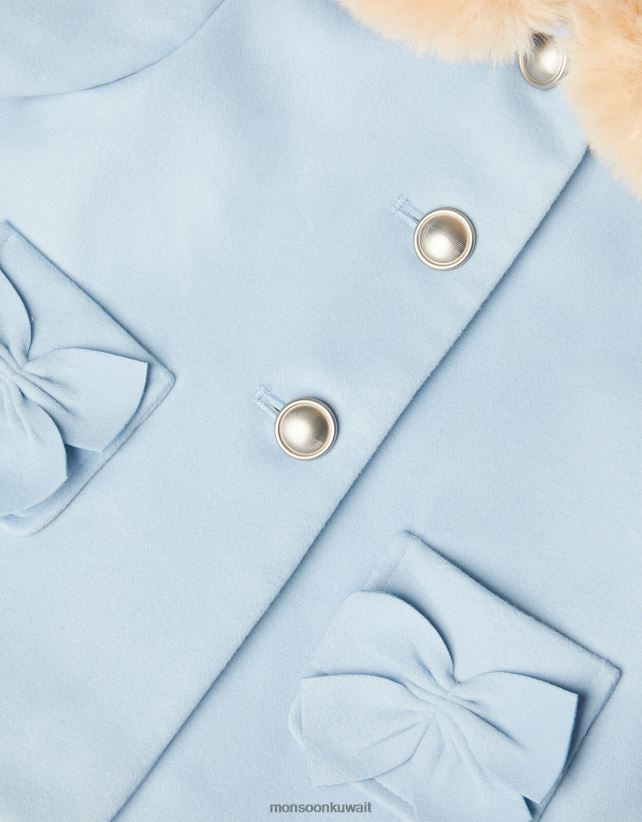 Monsoon Kuwait - معطف مزين بفرو صناعي على شكل فيونكة للأطفال ملابس الأزرق (الأزرق الشاحب) Monsoon بنت N4BV8X2062