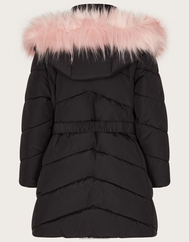 Monsoon UAE - معطف بغطاء رأس من الفرو الصناعي بحزام ملابس أسود Monsoon بنت N4BV8X1691