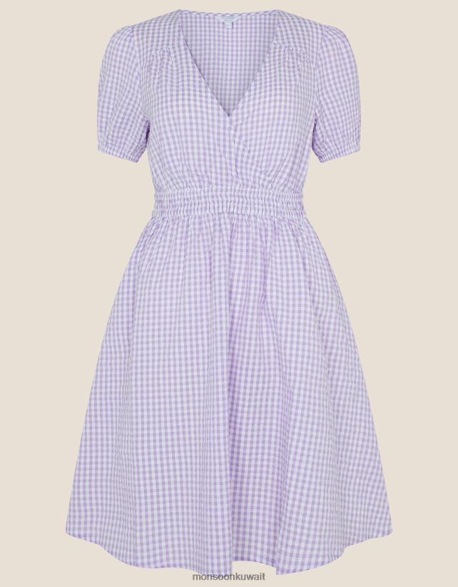 Monsoon Kuwait - فستان الجينغهام ملابس الأرجواني (أرجواني) Monsoon نحيف N4BV8X666