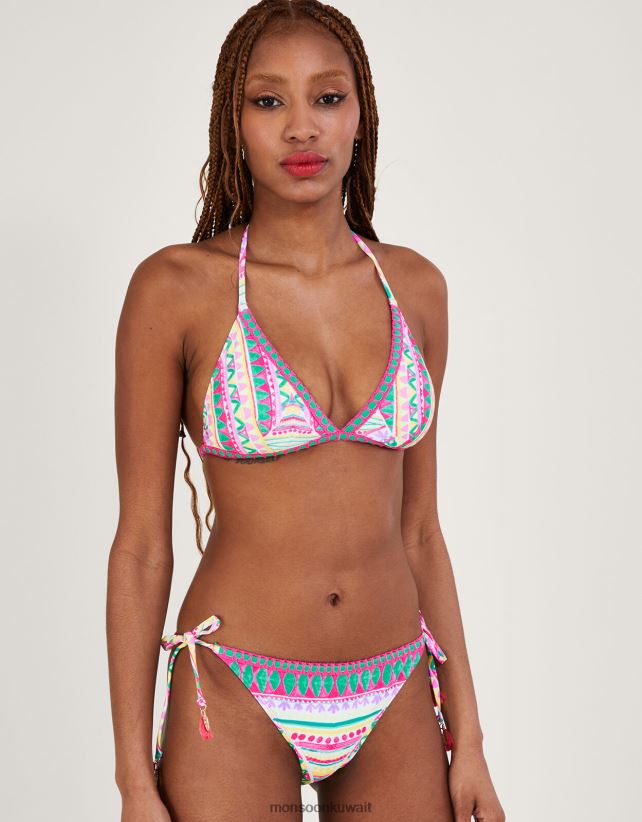 Monsoon Kuwait - قطعة بكيني علوية بكيني بطبعات فسيفساء ومزخرفة بالكروشيه من البوليستر المعاد تدويره ملابس لون القرنفل Monsoon نحيف N4BV8X314