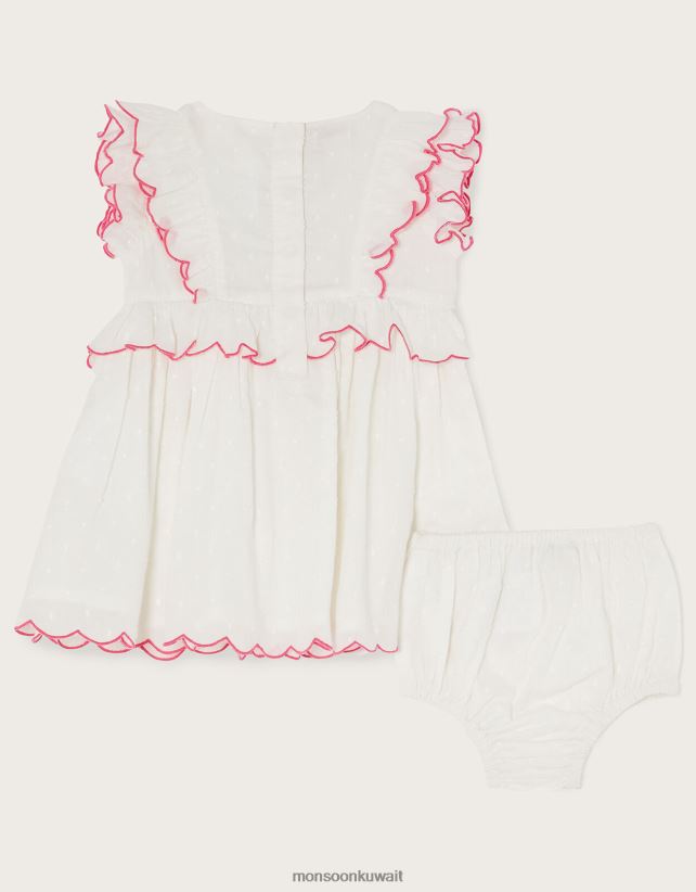 Monsoon محل - طقم فستان وسروال داخلي مطرز لحديثي الولادة ملابس عاج Monsoon أطفال N4BV8X2163