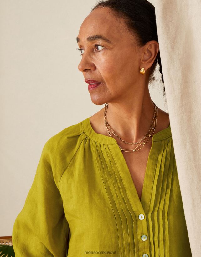 بلوزة من الكتان ملابس الأخضر (شارتروز) Monsoon نحيف N4BV8X1028 - Monsoon kuwait online shopping