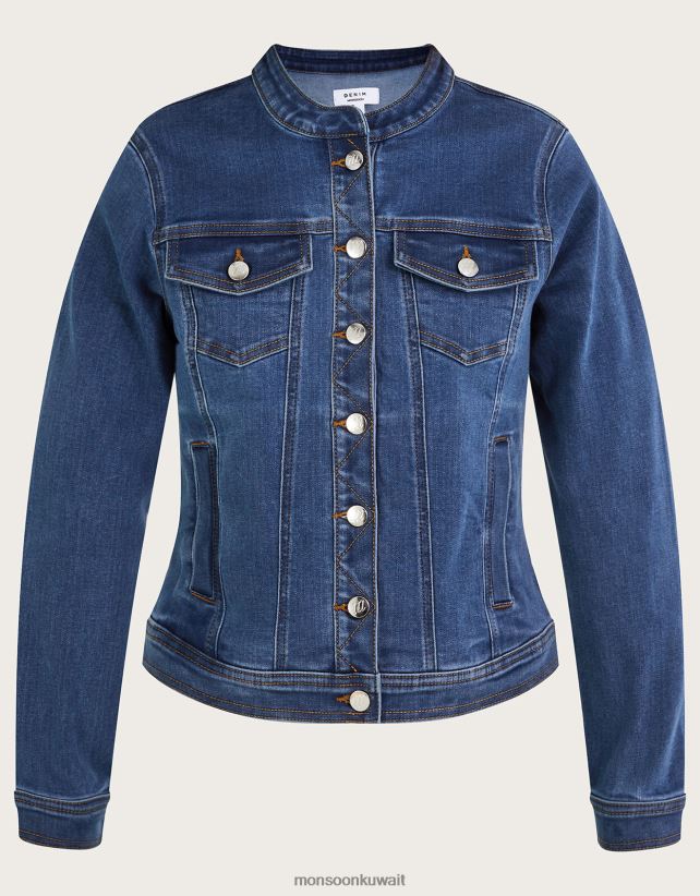 سترة من الدنيم بدون ياقة من Cassey مصنوعة من القطن المستدام ملابس الأزرق (الدنيم الأزرق) Monsoon نحيف N4BV8X721 - Monsoon kuwait avenues
