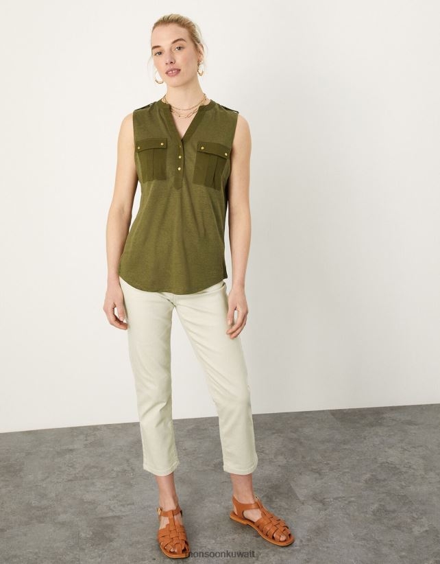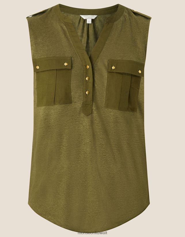 قميص بدون أكمام من الكتان المنسوج ملابس الأخضر (الكاكي) Monsoon نحيف N4BV8X2789 - Monsoon children