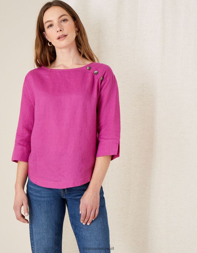 Monsoon محل - تي شيرت طويل من خشب الورد مصنوع من الكتان الخالص ملابس الوردي (أرجواني) Monsoon نحيف N4BV8X1108