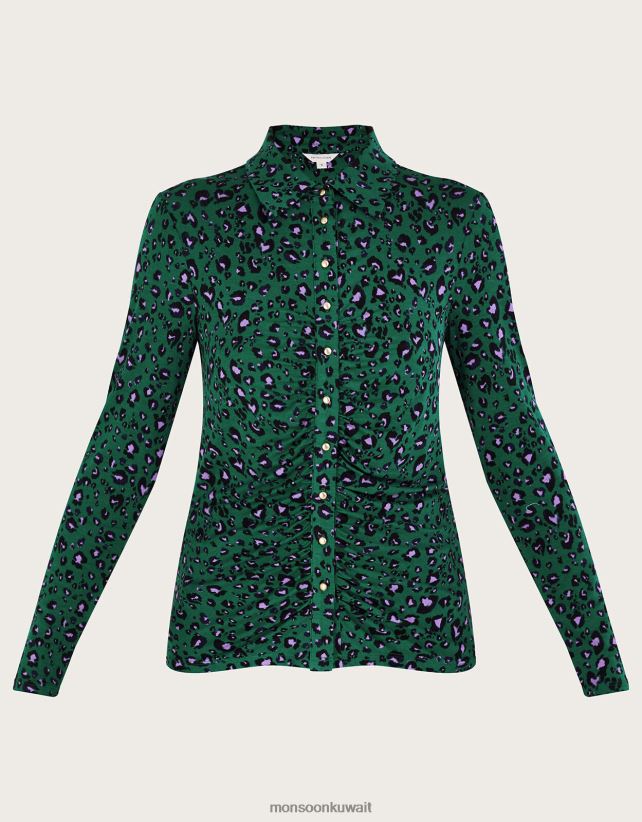 Monsoon محل - طباعة قميص جيرسي ruched ملابس أخضر Monsoon نحيف N4BV8X95