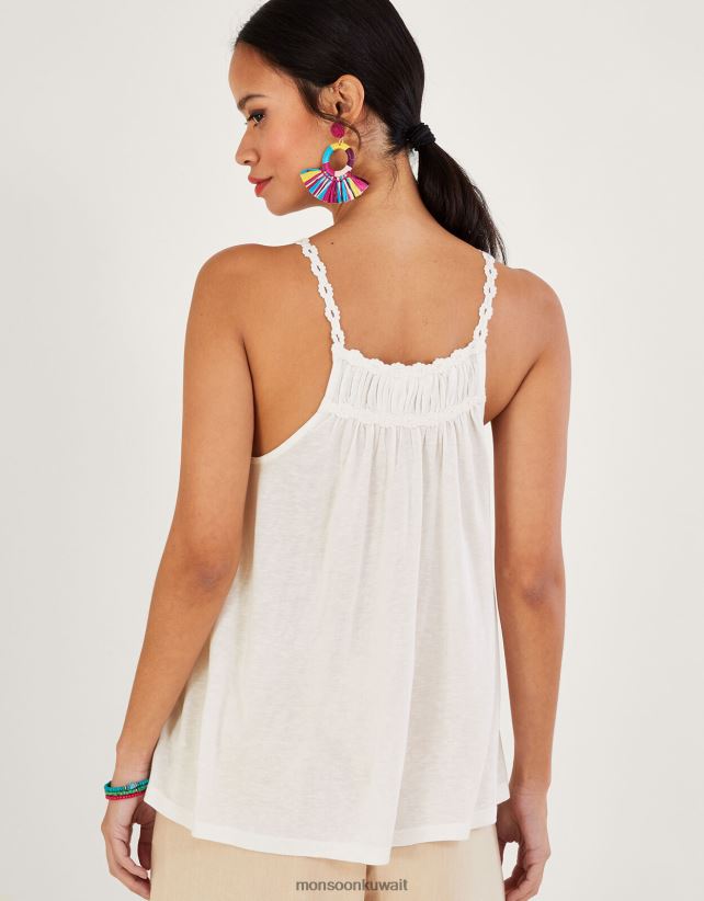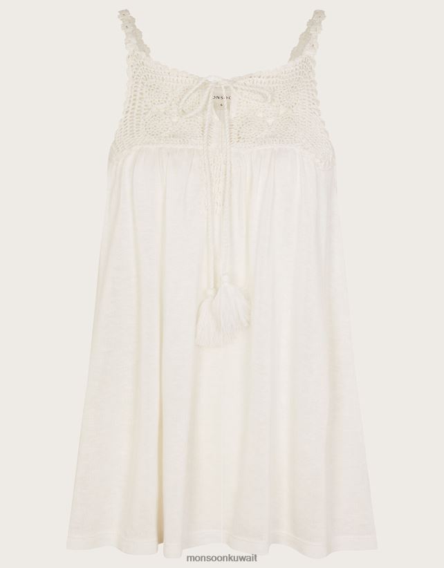 Monsoon محل - كامي جيرسي مزخرف بالكروشيه ملابس عاج Monsoon نحيف N4BV8X156