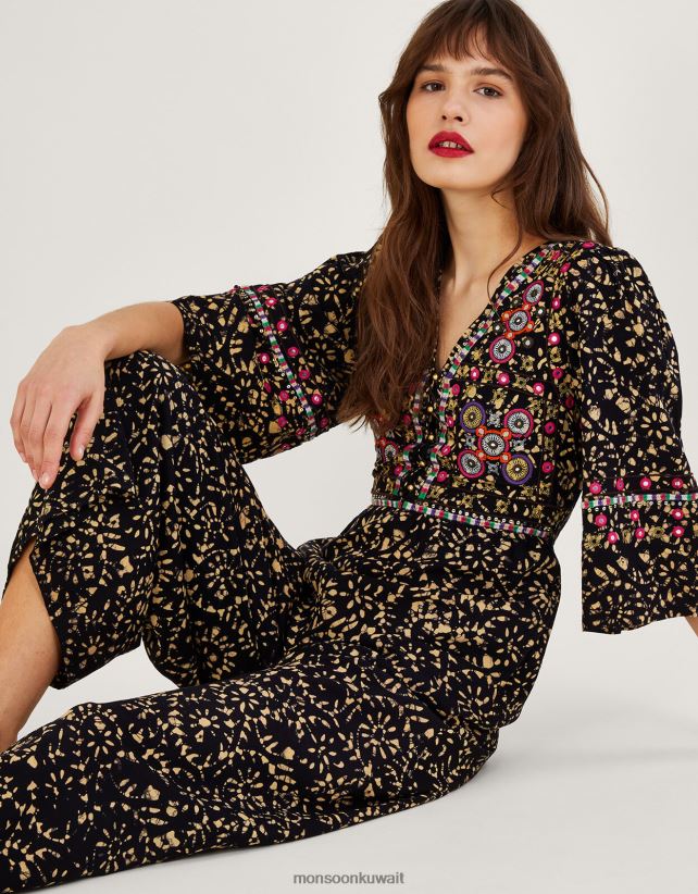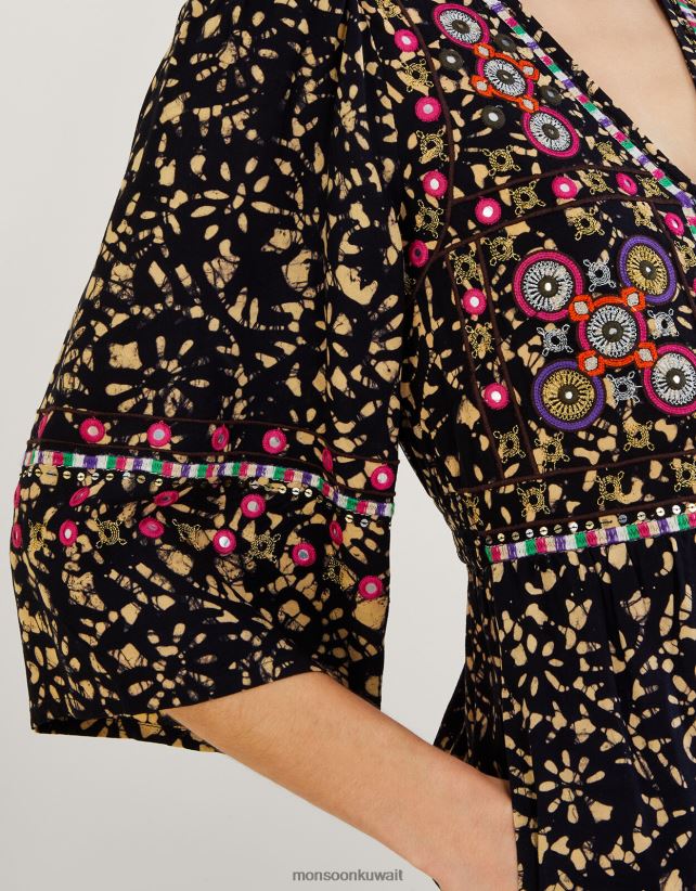 Monsoon Kuwait - بذلة مطرزة من الباتيك في لينزينغ إيكوفيرو ملابس أسود Monsoon نحيف N4BV8X870