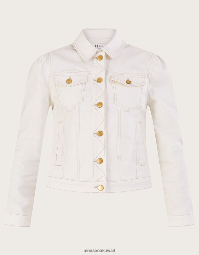 Monsoon Kuwait - سترة من الدنيم بأكمام منتفخة من القطن المستدام ملابس طبيعي (إكرو) Monsoon نحيف N4BV8X781