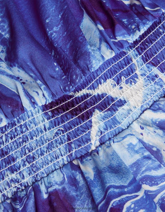 مع طباعة رخامية تحاكي الألوان الزرقاء للمحيط، هذه البذلة مثالية للعشاء المسائي على البحر. تضفي خط العنق المكشكش على شكل باردو لمسة نهائية جميلة، مع شورت بنمط culotte لمناسبات الصيف الأكثر أناقة. مجرد واحدة من خطواتنا نحو مستقبل الموضة المستدامة، نقدم S.E.W: التزامنا باستخدام المزيد من المواد الصديقة للبيئة في مجموعاتنا. تم إنشاء هذه المجموعة الكبسولة باستخدام أقمشة صديقة للبيئة ولها تأثير أقل على البيئة. سترى مزيجًا من القطن العضوي وأفضل المصادر، والفيسكوز من الغابات المزروعة بشكل أكثر مسؤولية والبوليستر المعاد تدويره المصنوع من نفايات ما بعد الاستهلاك. أزرق