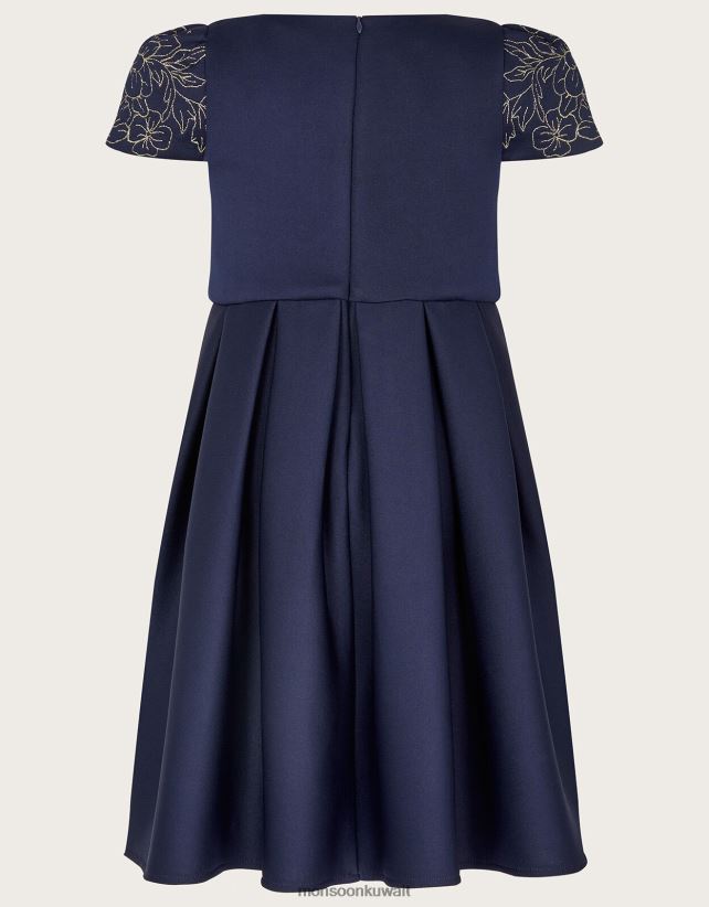 Monsoon Kuwait - فستان سكوبا مطرز بالزهور ملابس الأزرق الداكن) Monsoon بنت N4BV8X1787