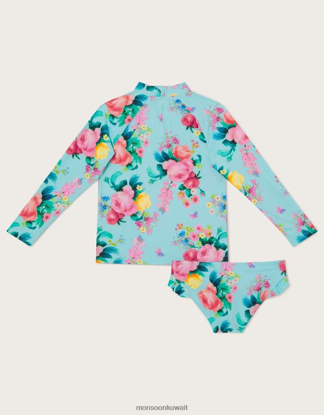 Monsoon UAE - طقم سباحة مكون من قطعتين مزين بالزهور مع حماية من الأشعة فوق البنفسجية 50+ ملابس الأزرق (الفيروز) Monsoon بنت N4BV8X2017