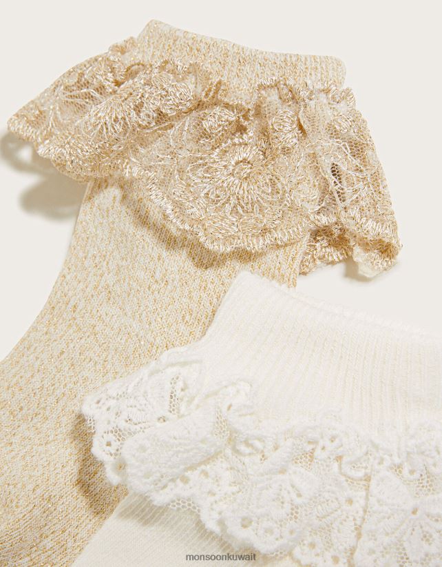 Monsoon UAE - مجموعة جوارب مزدوجة مزخرفة بالدانتيل للأطفال ملحق ذهب Monsoon بنت N4BV8X2658