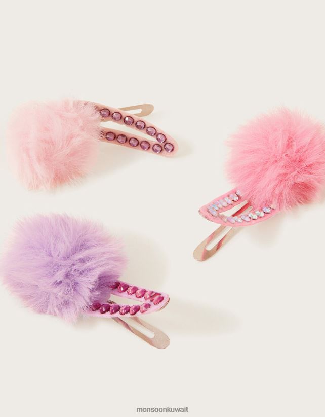 Monsoon UAE - مجموعة مشابك شعر صغيرة من الفرو الصناعي مكونة من ثلاثة قطع ملحق حار Monsoon بنت N4BV8X2519