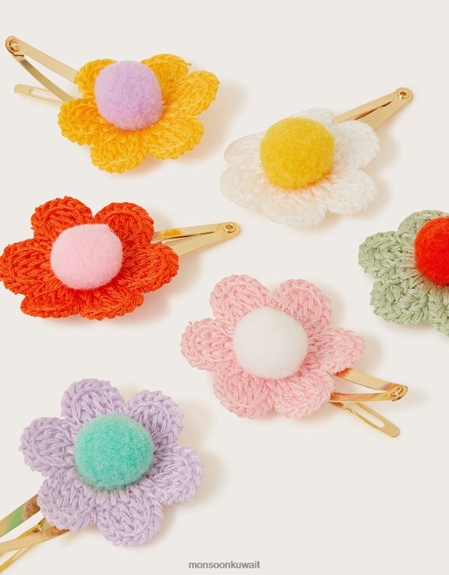 Monsoon UAE - مشابك شعر على شكل زهرة كروشيه بوم بوم، 6 قطع ملحق أنيق Monsoon بنت N4BV8X2573