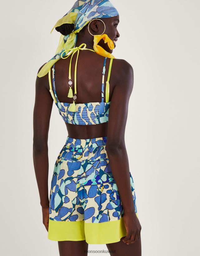 نقدم لكم تعاوننا الخاص بالذكرى الخمسين مع عقول الموضة المستقبلية. صُممت جنبًا إلى جنب مع طلاب كلية لندن للأزياء، واقفز إلى عالم من المطبوعات المتغيرة والألوان الجريئة الساحرة، الموجودة في كل قطعة - مجموعة مناسبة لترقية خزانة ملابسك الصيفية. استبدلي بنطالك الكتاني وتنوراتك المتوسطة بهذا الشورت. مشتق من طبعة مثقوبة، وهو طراز مرتفع يصل إلى أعلى الخصر قبل أن يمتد إلى قصة مريحة فوق الفخذين. تم تشطيبه بدرزات مدببة وجيوب وتفاصيل ربطة عنق. يتوفر قميص قصير مطابق. أزرق