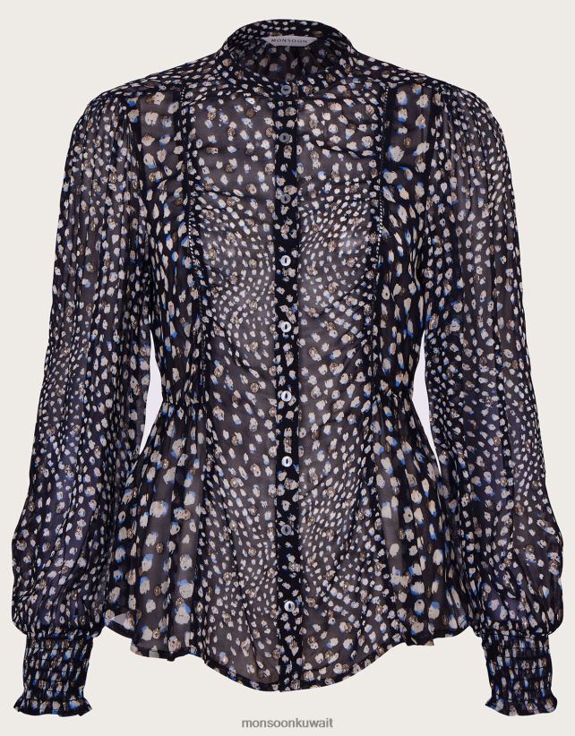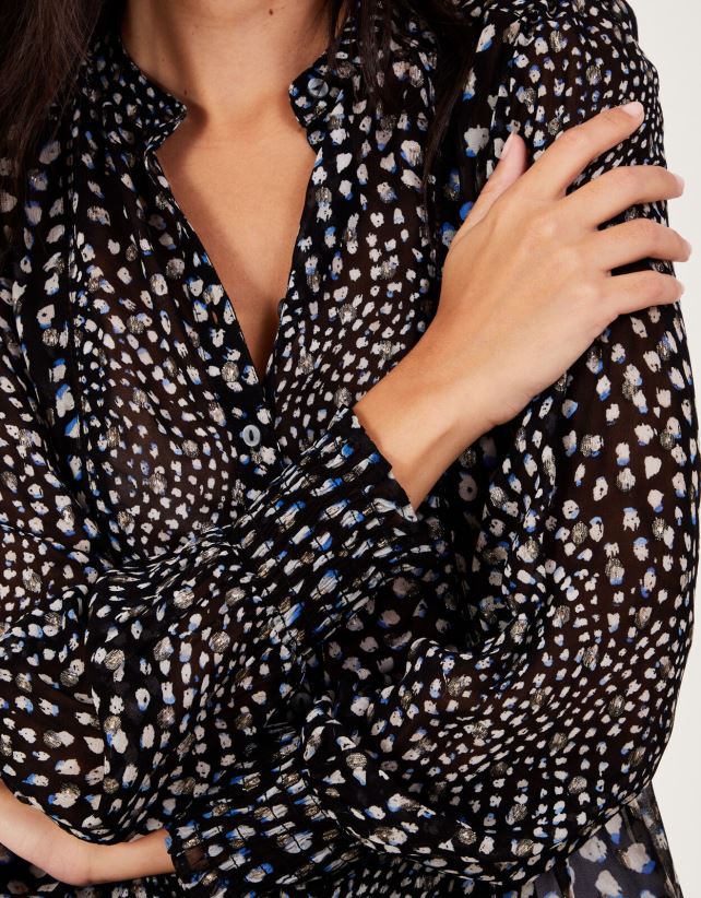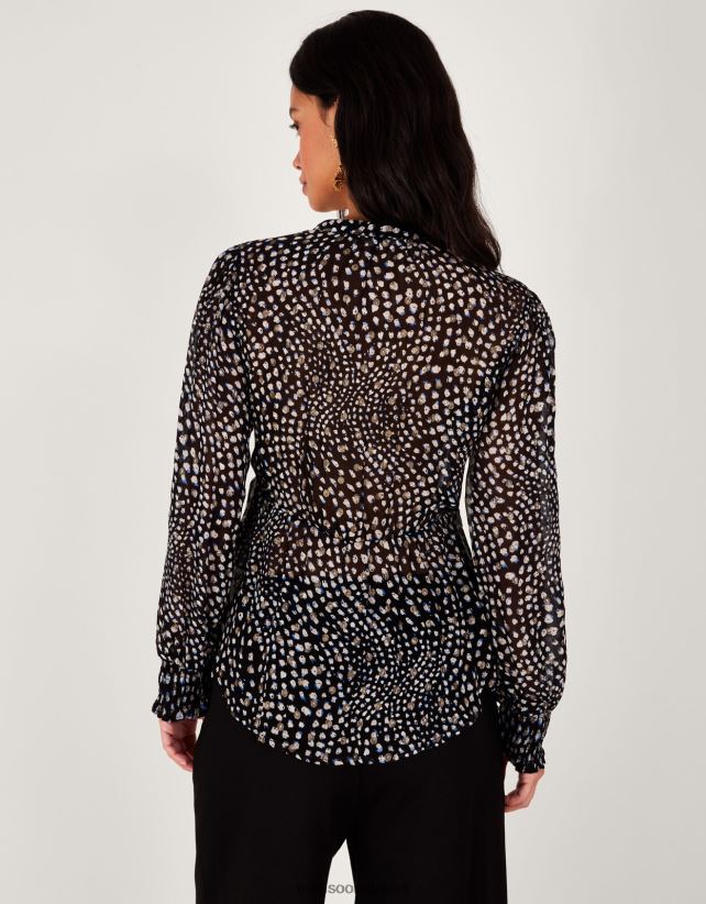 بلوزة هوليس ذات البقع المعدنية مع الفيسكوز المستدام ملابس أسود Monsoon نحيف N4BV8X48 - Monsoon kuwait avenues