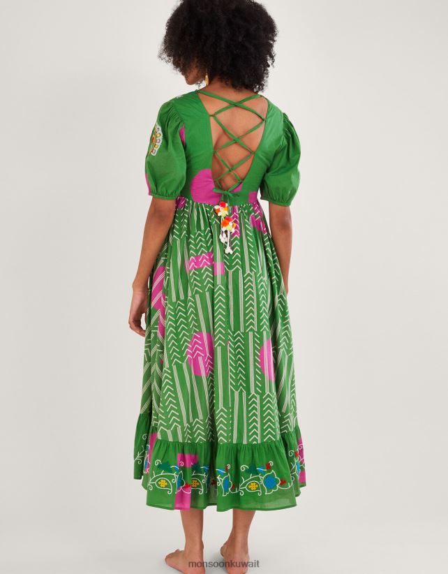 فستان شيفرون مطرز يدويًا ملابس أخضر Monsoon نحيف N4BV8X585 - Monsoon kuwait avenues