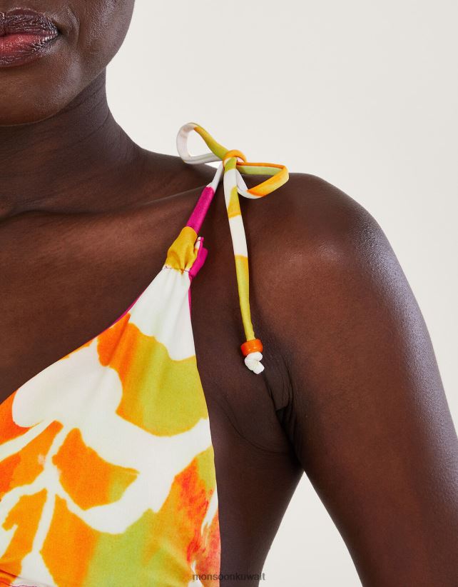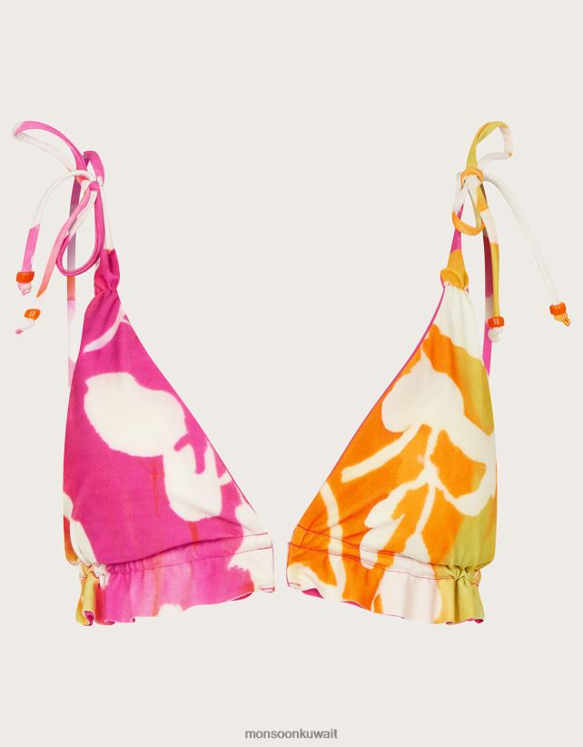 قطعة بكيني علوية مكشكشة بطباعة تجريدية من البوليستر المعاد تدويره ملابس لون القرنفل Monsoon نحيف N4BV8X1054 - Monsoon kuwait online shopping