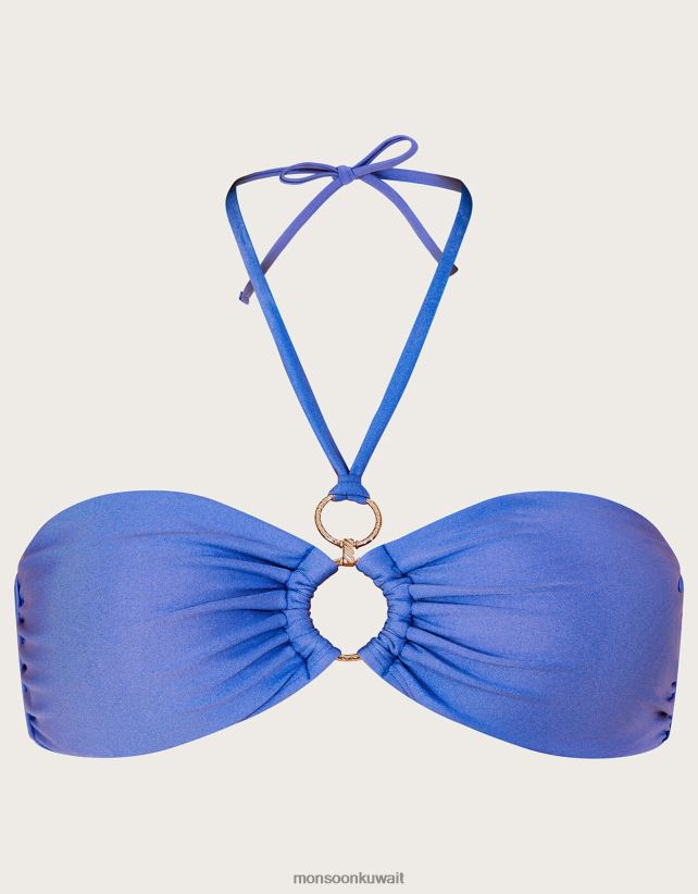 قطعة بيكيني علوية سادة بتفاصيل حلقة مع بوليستر معاد تدويره ملابس أزرق Monsoon نحيف N4BV8X220 - Monsoon children