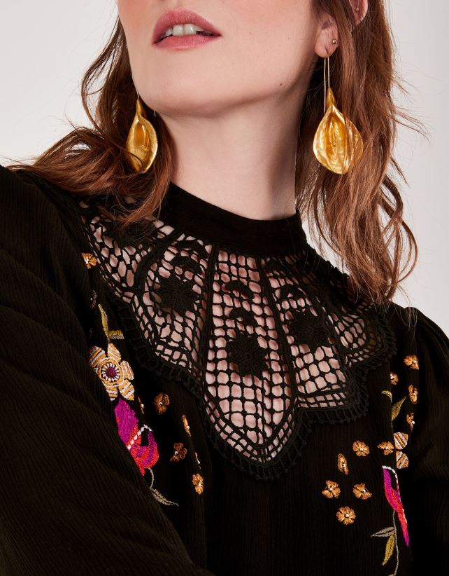 قطع علوية مطرزة بالزهور ملابس أسود Monsoon نحيف N4BV8X514 - Monsoon online customer service