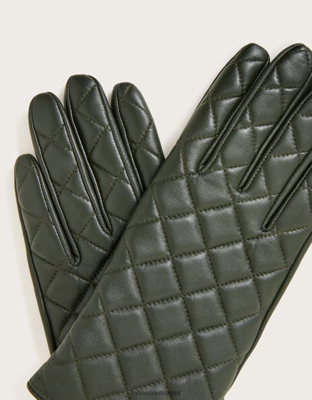 قفازات جلدية مبطنة ملحق أخضر Monsoon نحيف N4BV8X1445 - Monsoon kuwait avenues