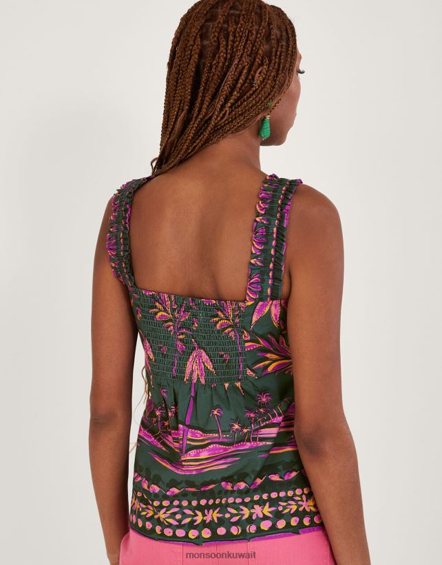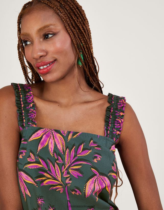 قميص بيدرا كامي بطبعة نخيل من القطن المستدام ملابس الأخضر (الكاكي) Monsoon نحيف N4BV8X325 - Monsoon children