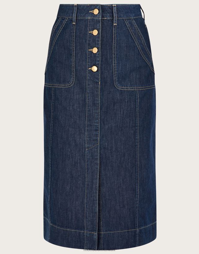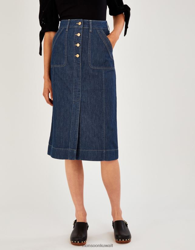 Monsoon معنى - تنورة بأزرار من الدينيم مصنوعة من القطن العضوي ملابس الأزرق (الدنيم الأزرق) Monsoon نحيف N4BV8X1025