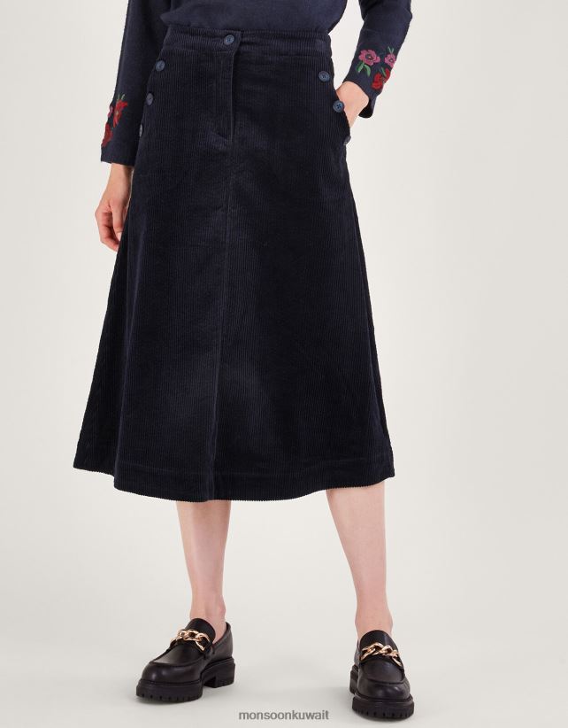 Monsoon معنى - تنورة ميدي الحبل ملابس الأزرق (منتصف الليل) Monsoon نحيف N4BV8X28