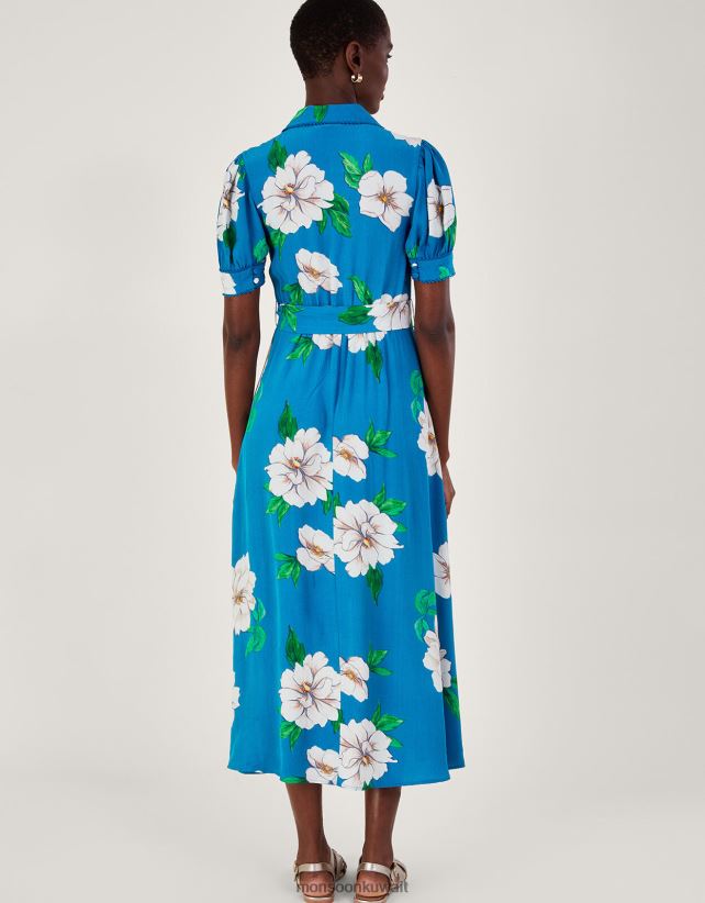Monsoon معنى - فستان ميلانا على شكل قميص مزين بالفيسكوز المستدام ملابس أزرق Monsoon نحيف N4BV8X517