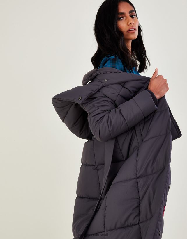 Monsoon معنى - معطف ماكسي مبطن بغطاء رأس قمع ملابس الرمادي (الفحم) Monsoon نحيف N4BV8X492