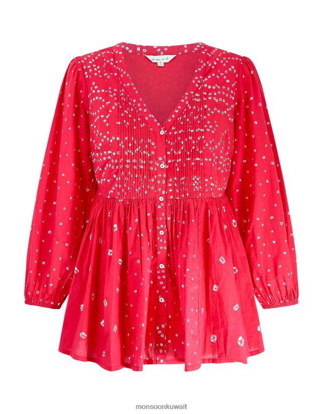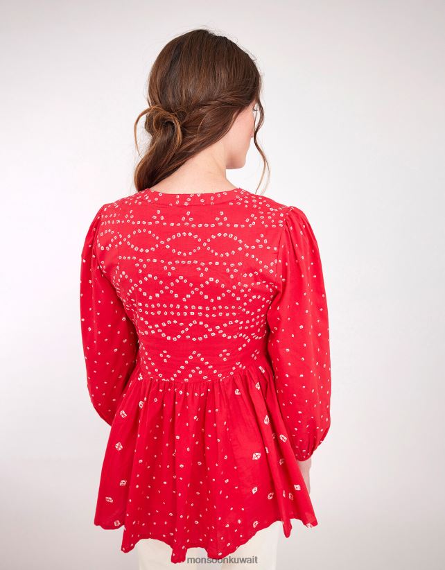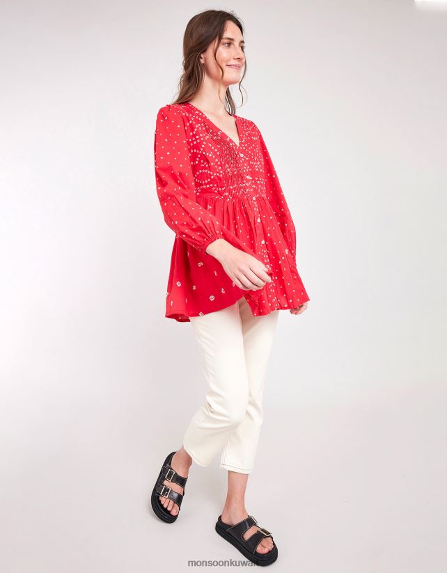Monsoon UAE - بلوزة مطبوعة من إيست نوفا باندهاني ملابس أحمر Monsoon نحيف N4BV8X687