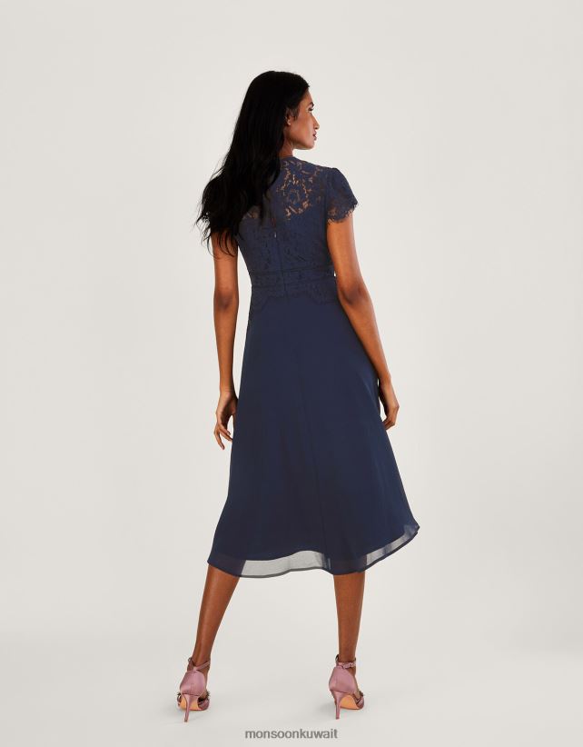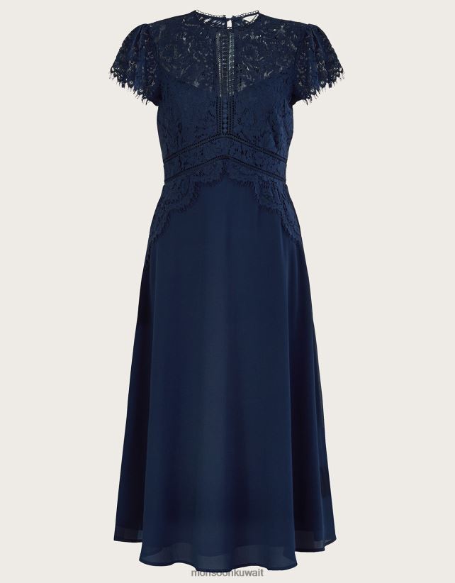 Monsoon UAE - فستان لويز ميدي دانتيل ملابس الأزرق الداكن) Monsoon نحيف N4BV8X756